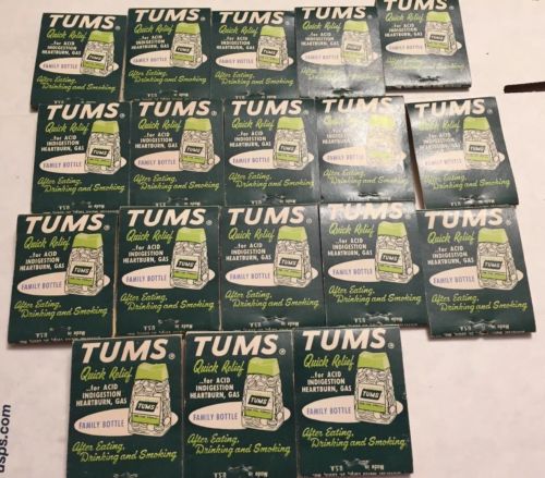 Title (ebay affiliate link): Vintage Tums Medicine Advertising Matchbook New Old Stock Unstruck Lot Of 18