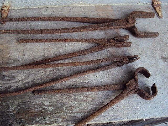 Title (ebay affiliate link): Antique Blacksmith Tongs Forge Tools Lot of Four Bolt Rivet Tongs Rusted Lot/4