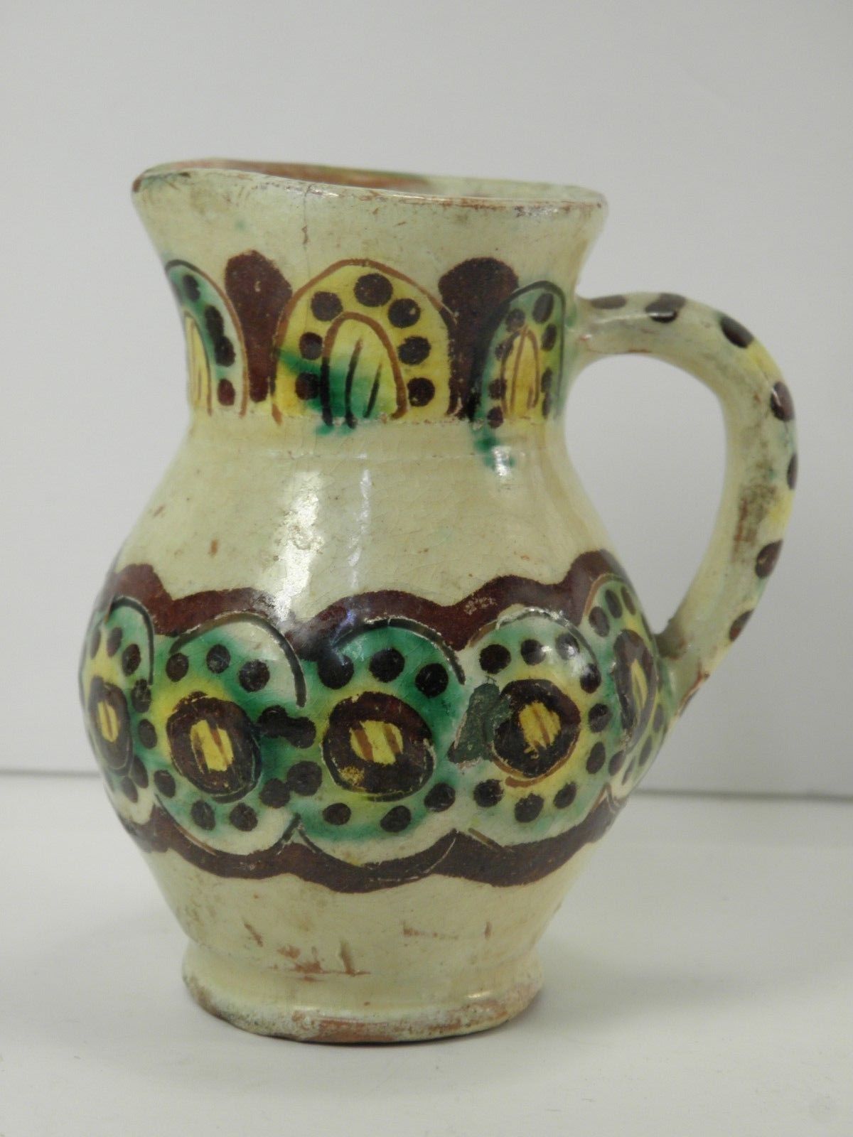 Title (ebay affiliate link): EARLY ANTIQUE SMALL MINIATURE HAND DECORATED REDWARE PITCHER RED WARE EWER
