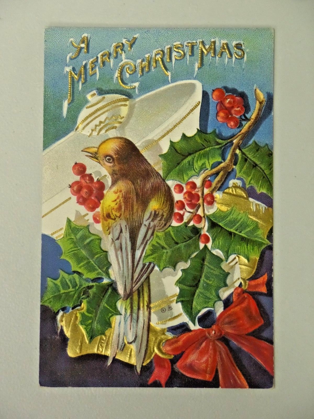 Vintage A Merry Christmas Embossed E. Nash 1910 Postcard Unposted 1801