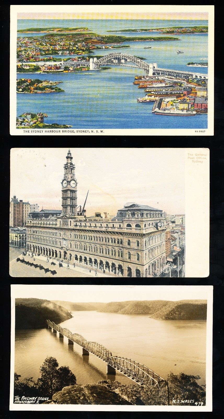 3 Old Postcards of NSW - Sydney GPO, Bridge, Hawksbury River (354)