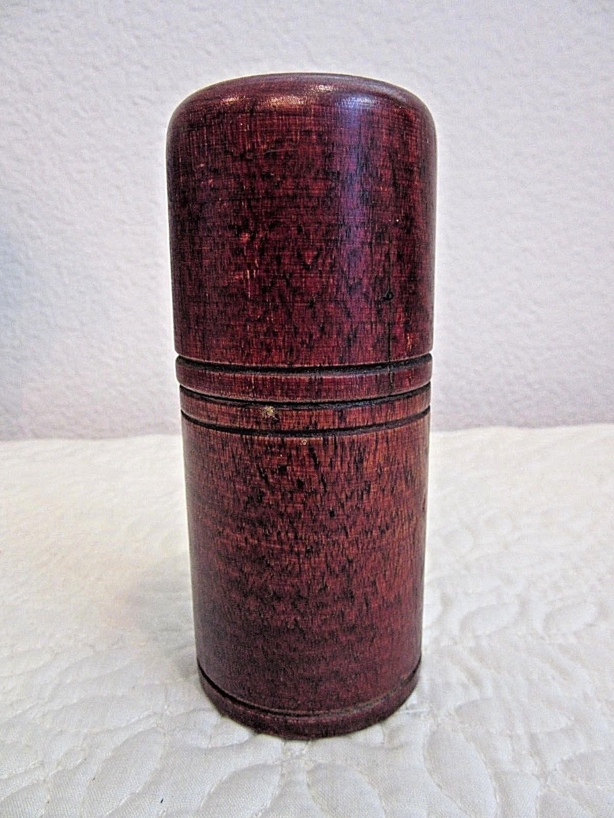 Title (ebay affiliate link): Antique Tall Round Wooden Box Containing Bottle of Gold Dust For Making Paint