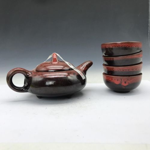 China Porcelain Hand Painted Tea Set, 4 Cups & Teapot, Boxed. b654