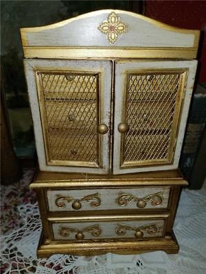 Vintage Florentine Wood Jewelry Box Chest 3 Drawer Music Box Shabby Chic Gold