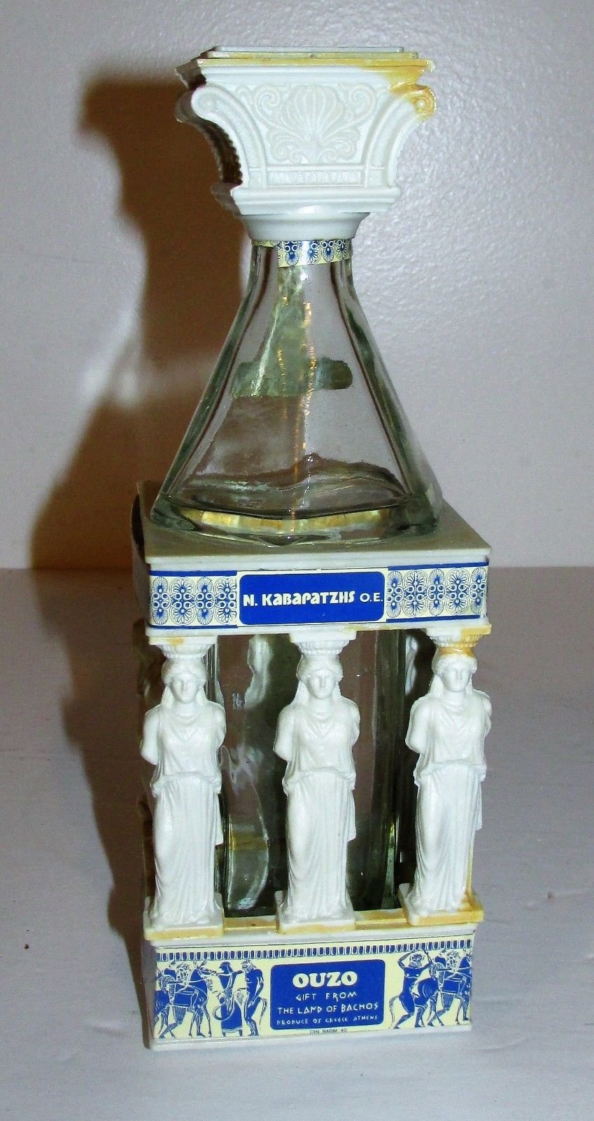 Vintage Collectible Bottle Greek Ouzo bottle with Caryatids, FULL