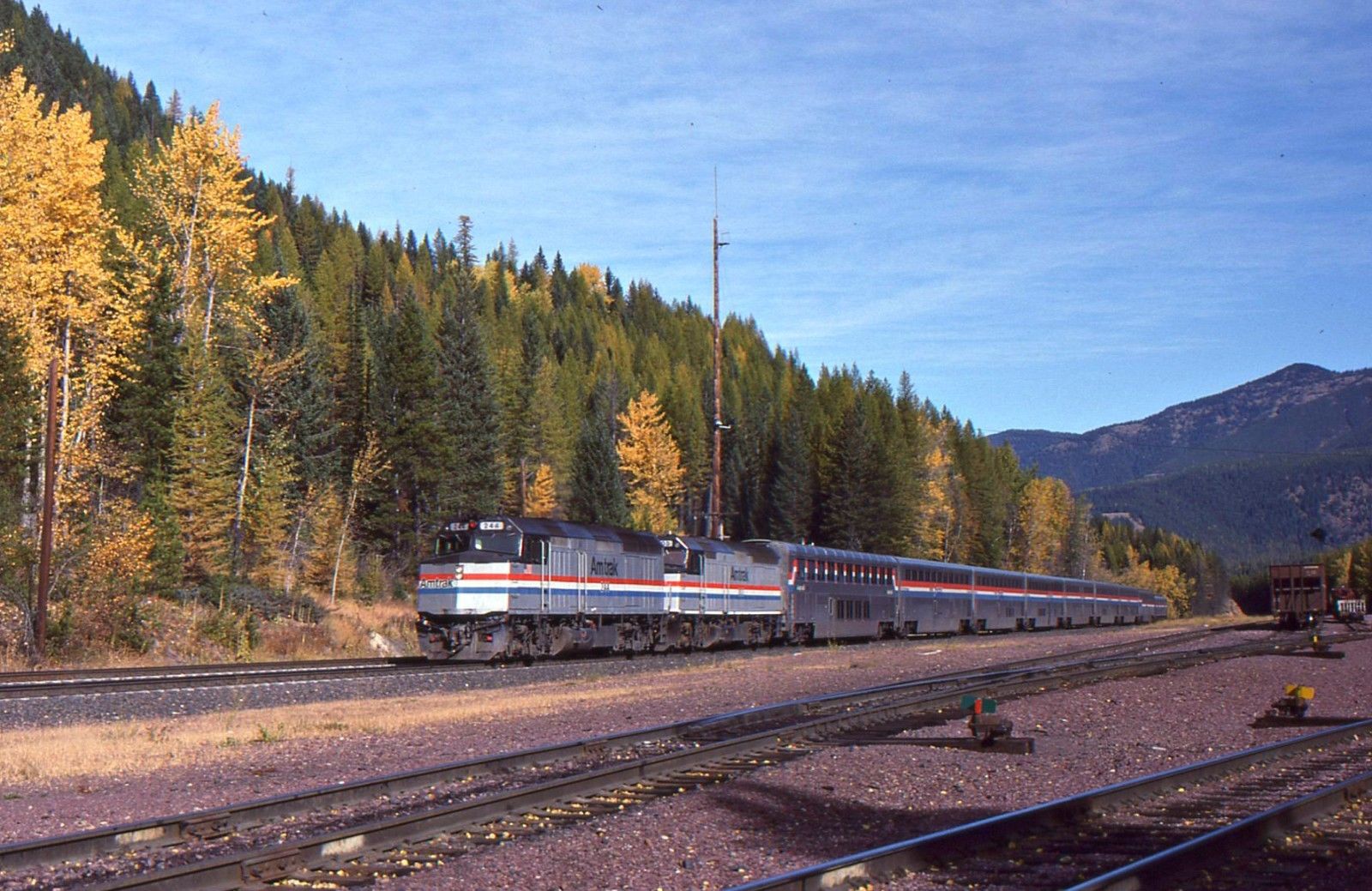 Title (ebay affiliate link): Original slide-Amtrak F40PH #244 & Passenger Train/ Essex,MT. October 1991-Nice!