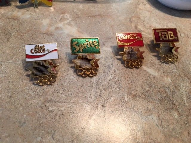 Title (ebay affiliate link): Coca Cola 1984 olympic pins including sprite, Diet Coke & Tab