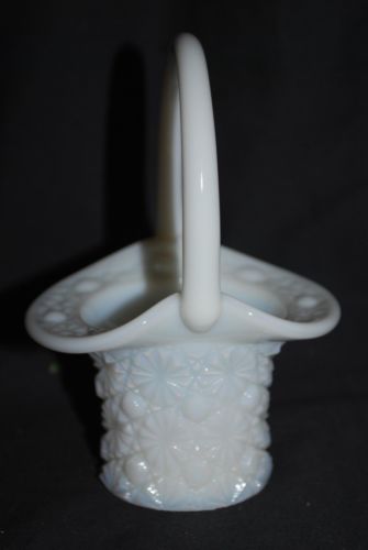 Vintage Fenton Art Glass White Milk Glass Daisy & Button 5" Mini Basket