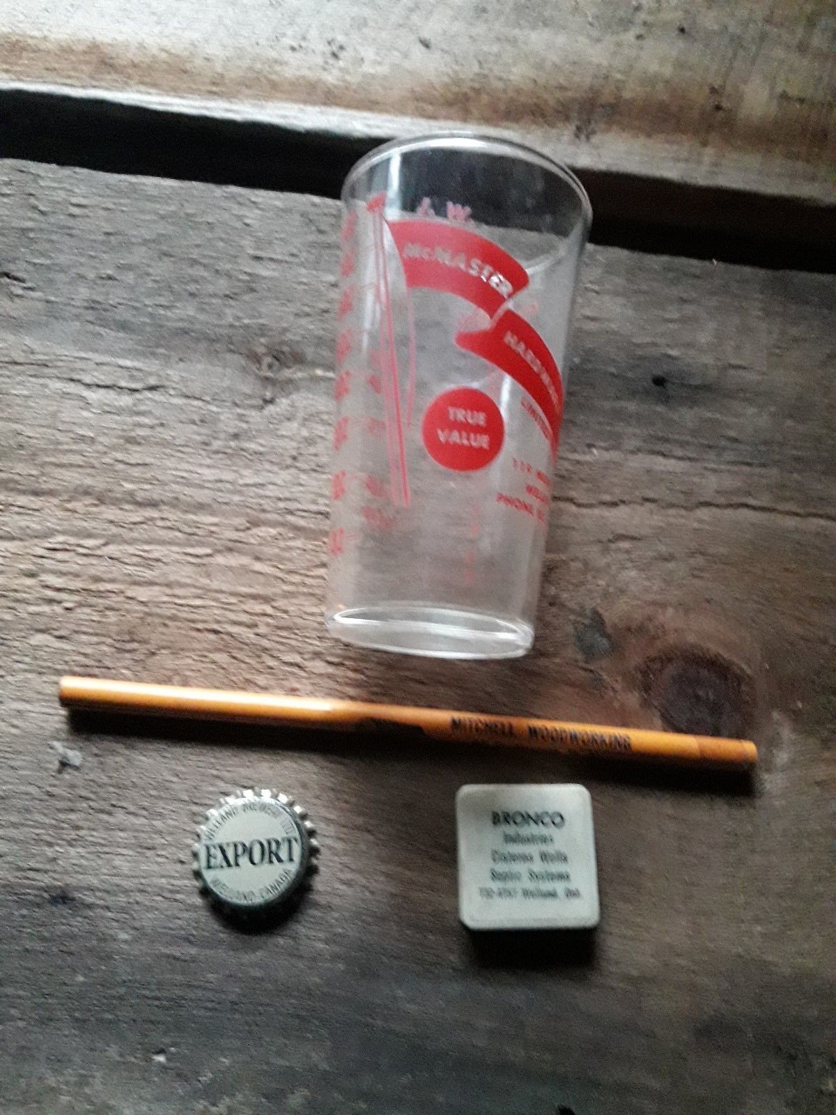 Vintage Welland Advertising Memorabilia Items, McMASTER HARDWARE measuring glass