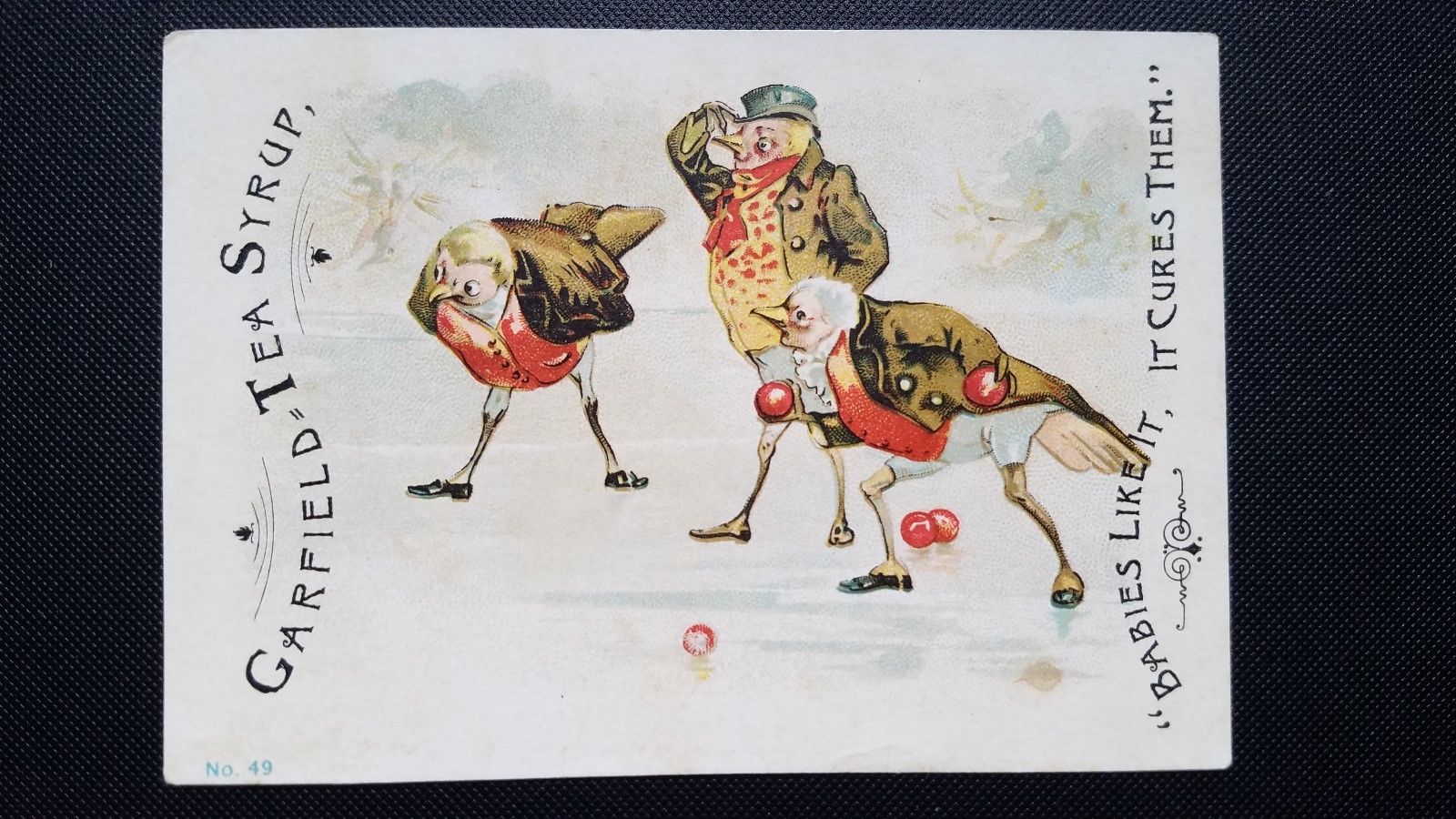 Title (ebay affiliate link): 1880s Brooklyn NYC Trade Card Garfield Tea Syrup Remedy MEDICINE Babies Laxative