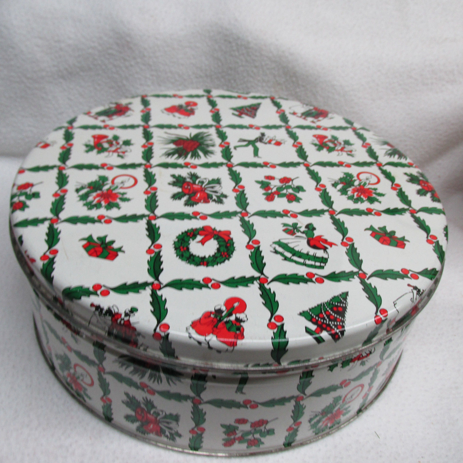 Vintage 10" Round Christmas Cookie Tin Candy Container
