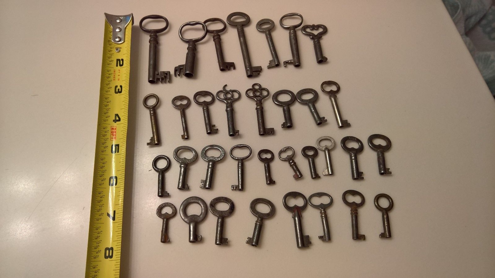 LOT OF 33 ANTIQUE FURNITURE, LOCK, BARREL KEYS