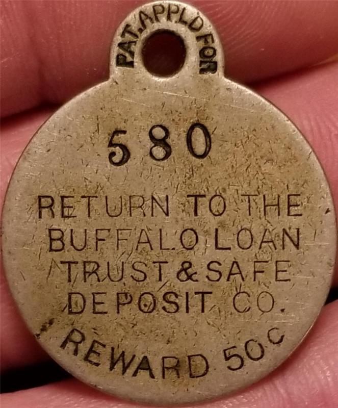 Title (ebay affiliate link): Vintage Keychain Tag Token BUFFALO, NY LOAN TRUST & SAFE DEPOSIT REWARD 50 CENTS