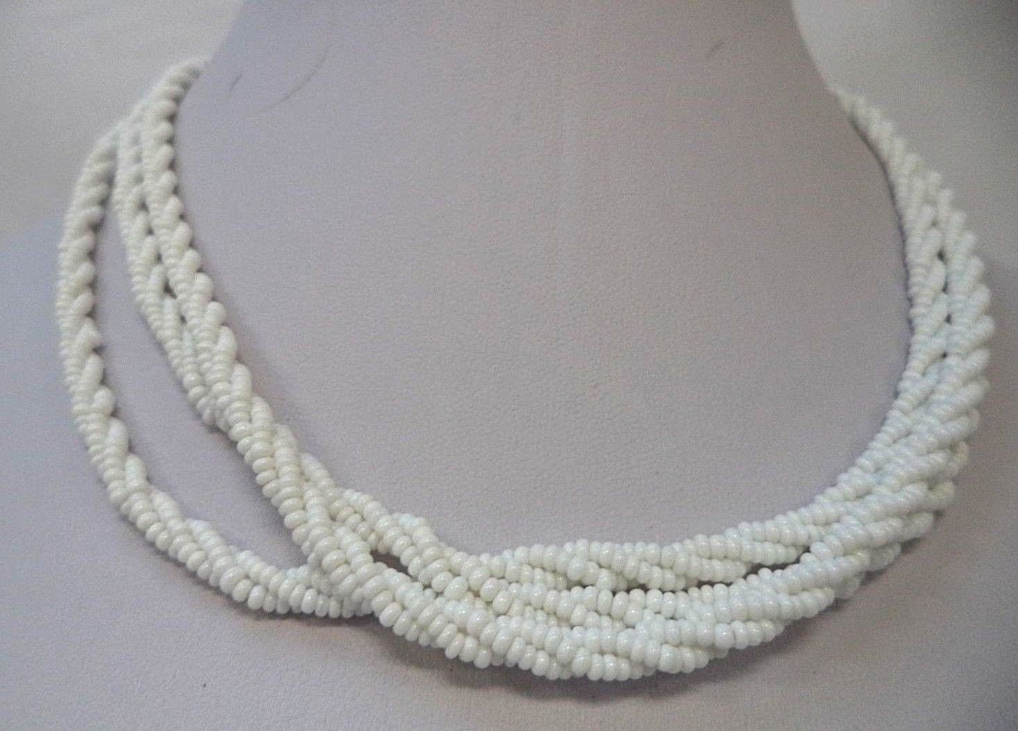 Title (ebay affiliate link): STUNNING VINTAGE ESTATE MILK GLASS TRIPLE STRAND BEADED 16 1/2" NECKLACE!! 5125U