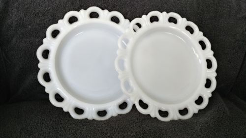 SET OF MILKGLASS PLATES WITH FILIGREE EDGING