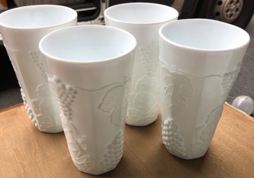 Title (ebay affiliate link): Set of 4 Westmoreland Colony White Milk Glass Paneled Grape Water Tumblers