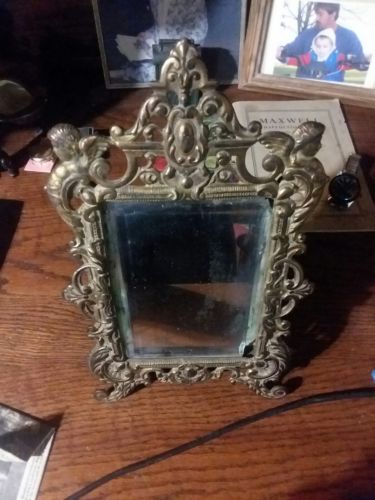 Antique plb&g gilded brass mirror cherub