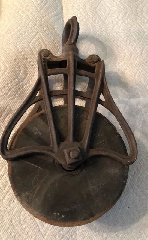 Title (ebay affiliate link): Primitive Antique Old Farm Barn Cast Iron & Wood Barn Hay Loft Pulley