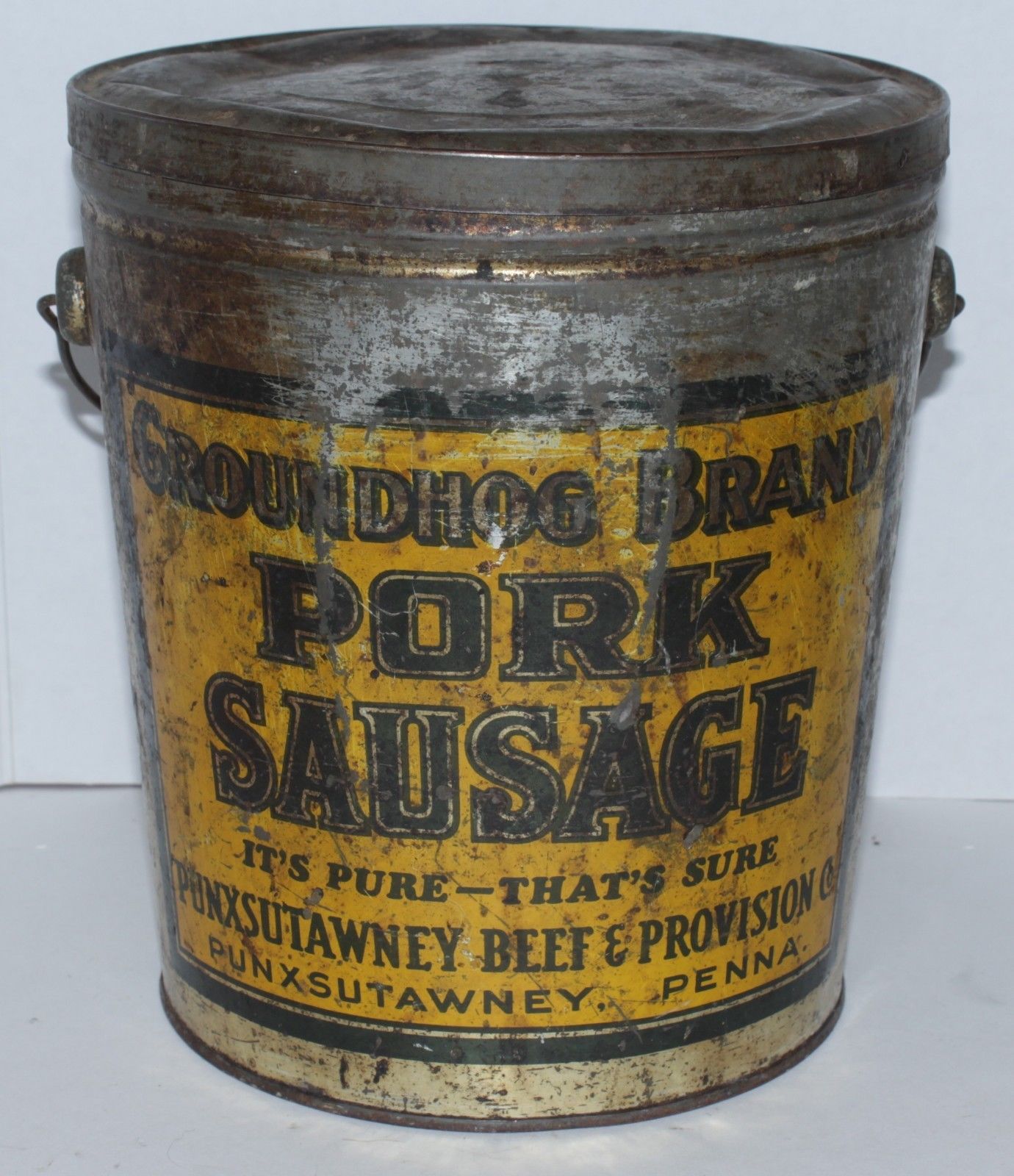Title (ebay affiliate link): Antique Punxsutawney Pa Groundhog Brand Pork Sausage Can Tin Advertising