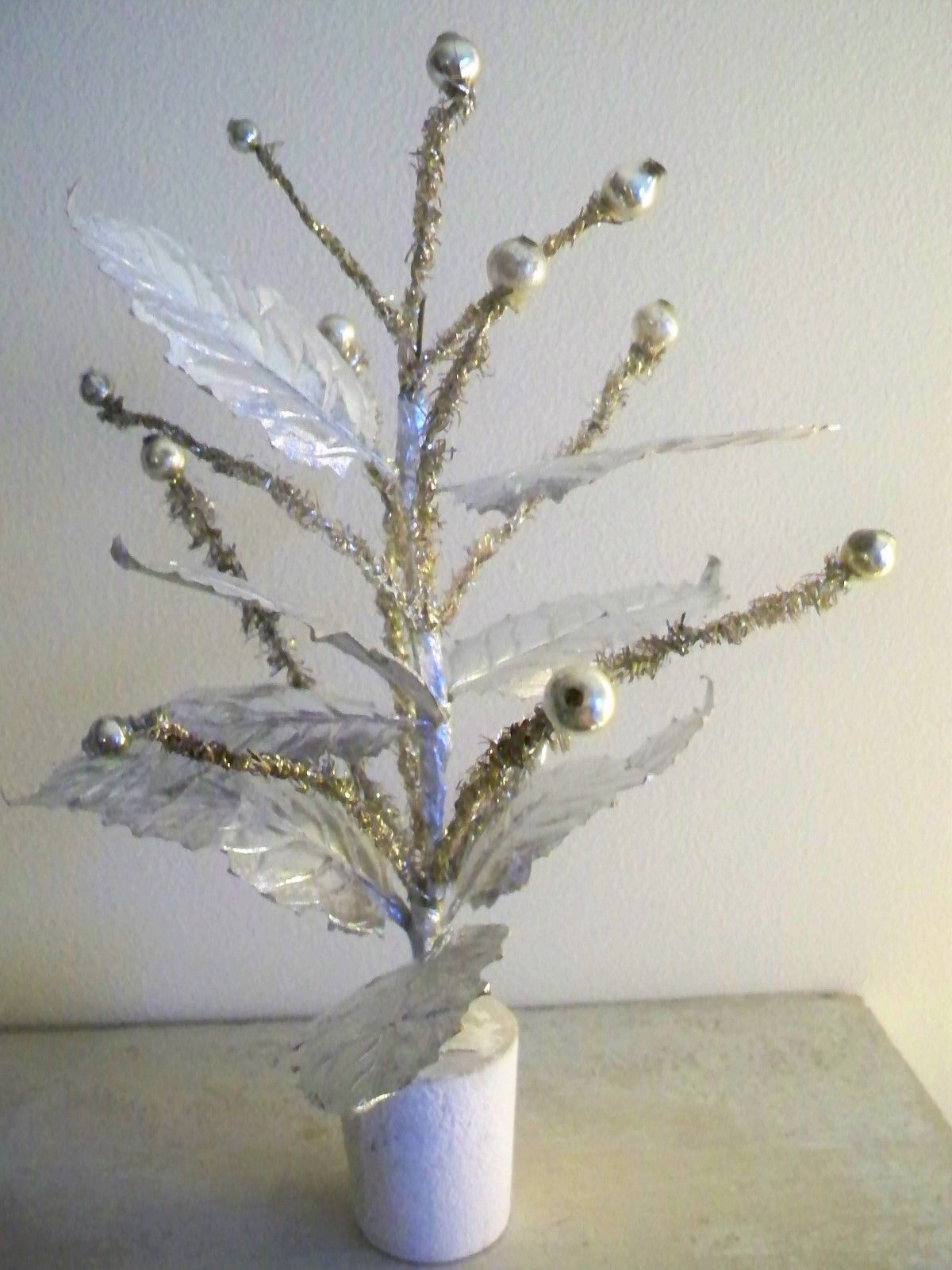 Title (ebay affiliate link): VINTAGE Shabby Cottage Chic Silver MERCURY GLASS Foil CHRISTMAS Tree Decor JAPAN
