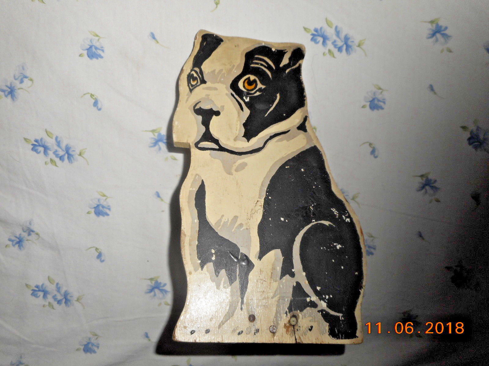 AAFA ANTIQUE WOODEN BOSTON TERRIER WEDGE DOOR STOP DOORSTOP
