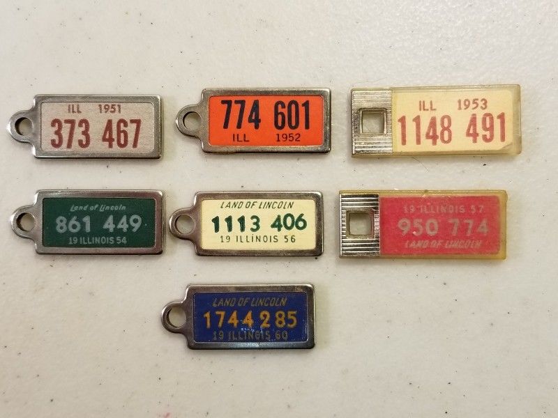 7 Vtg. ILLINOIS DAV Disabled American Veterans Miniature LICENSE PLATES 1951-60