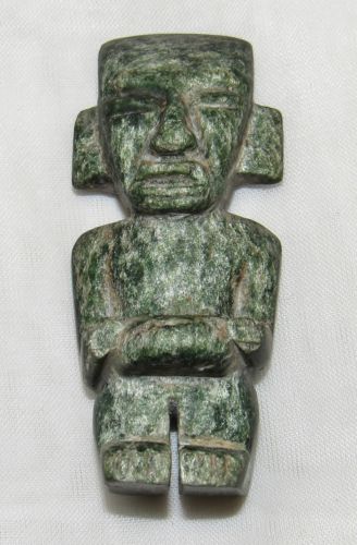 Title (ebay affiliate link): Ancient Olmec Aztec Pre-Columbian Effigy God Mask Man Statue Carved Jade Stone