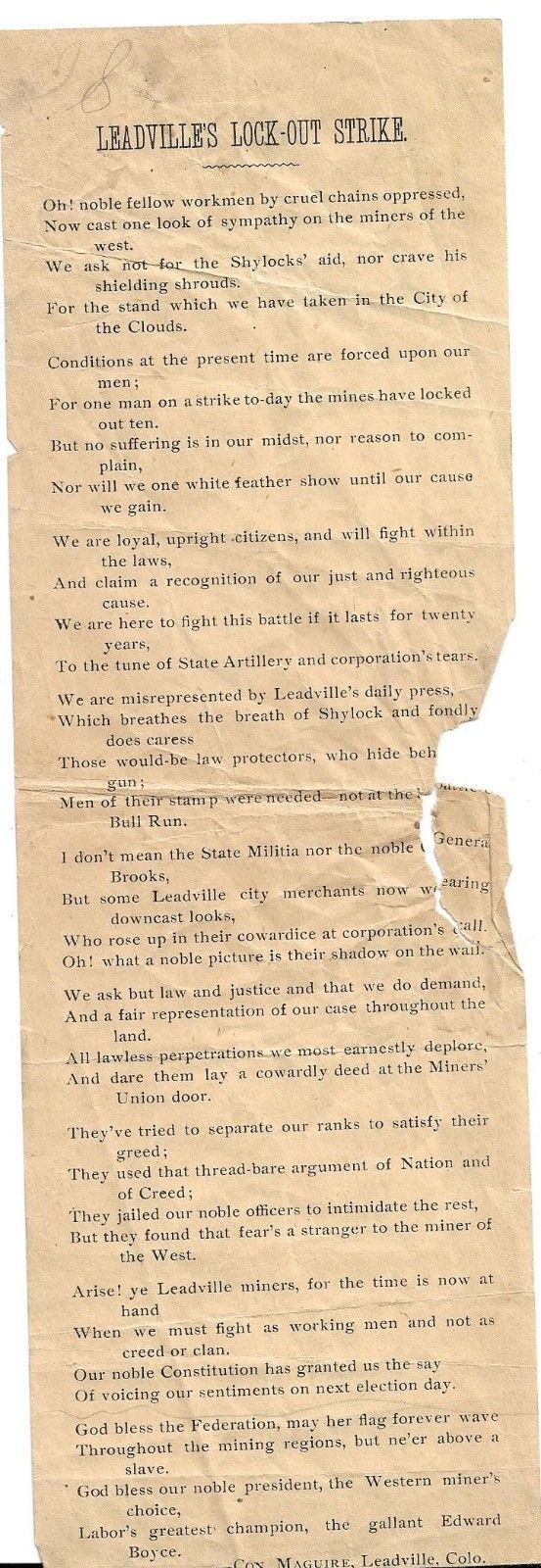 1897 paper,poem about Leadville''s Lock Out Strike,MINING