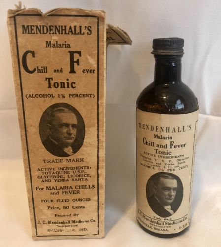 Title (ebay affiliate link): Antique Pharmacy Bottle J.C. Mendenhall Medicine Mendenhalll''s Malaria Tonic