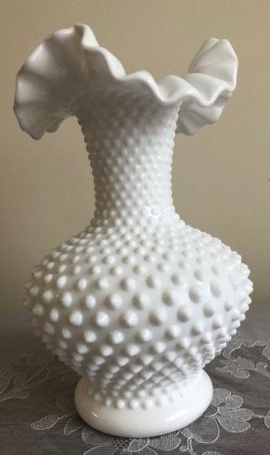 Title (ebay affiliate link): Fenton Milk Glass Hobnail 10 3/8 inch Ruffled Edge Vase Vintage
