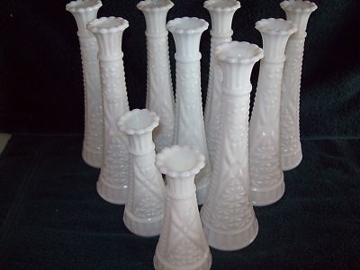 White Milk Glass-Lot of 10 Bud Vases-Vintage-9" and 6"