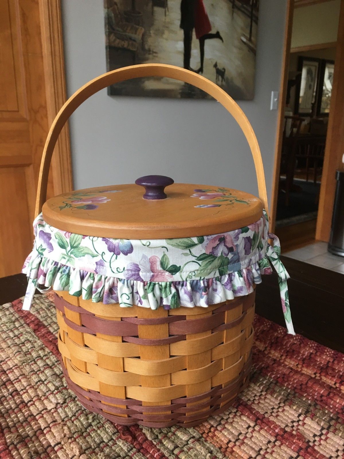 Title (ebay affiliate link): 1996 Longaberger basket with Hand Painted Lid, matching liner, plastic protector