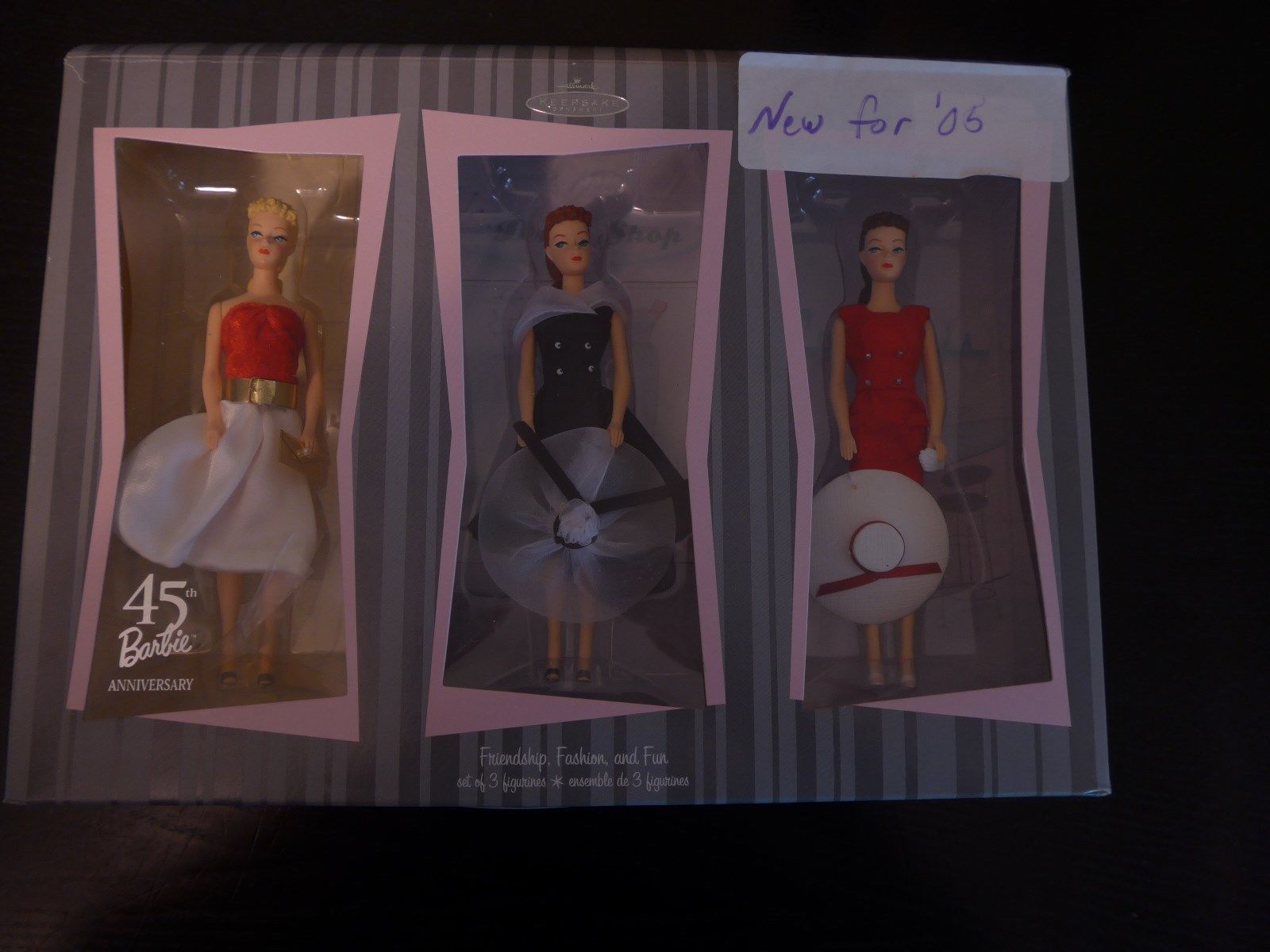Title (ebay affiliate link): Hallmark Keepsake Barbie Set Friendship Fashion & Fun 45th Anniversary Ornaments
