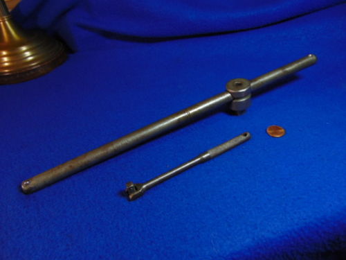 Title (ebay affiliate link): 2 Vtg PLUMB PLVMB Breaker Bars USA 1/4" Drive 5.5" 4766 Sliding T 1/2" Drive 14"