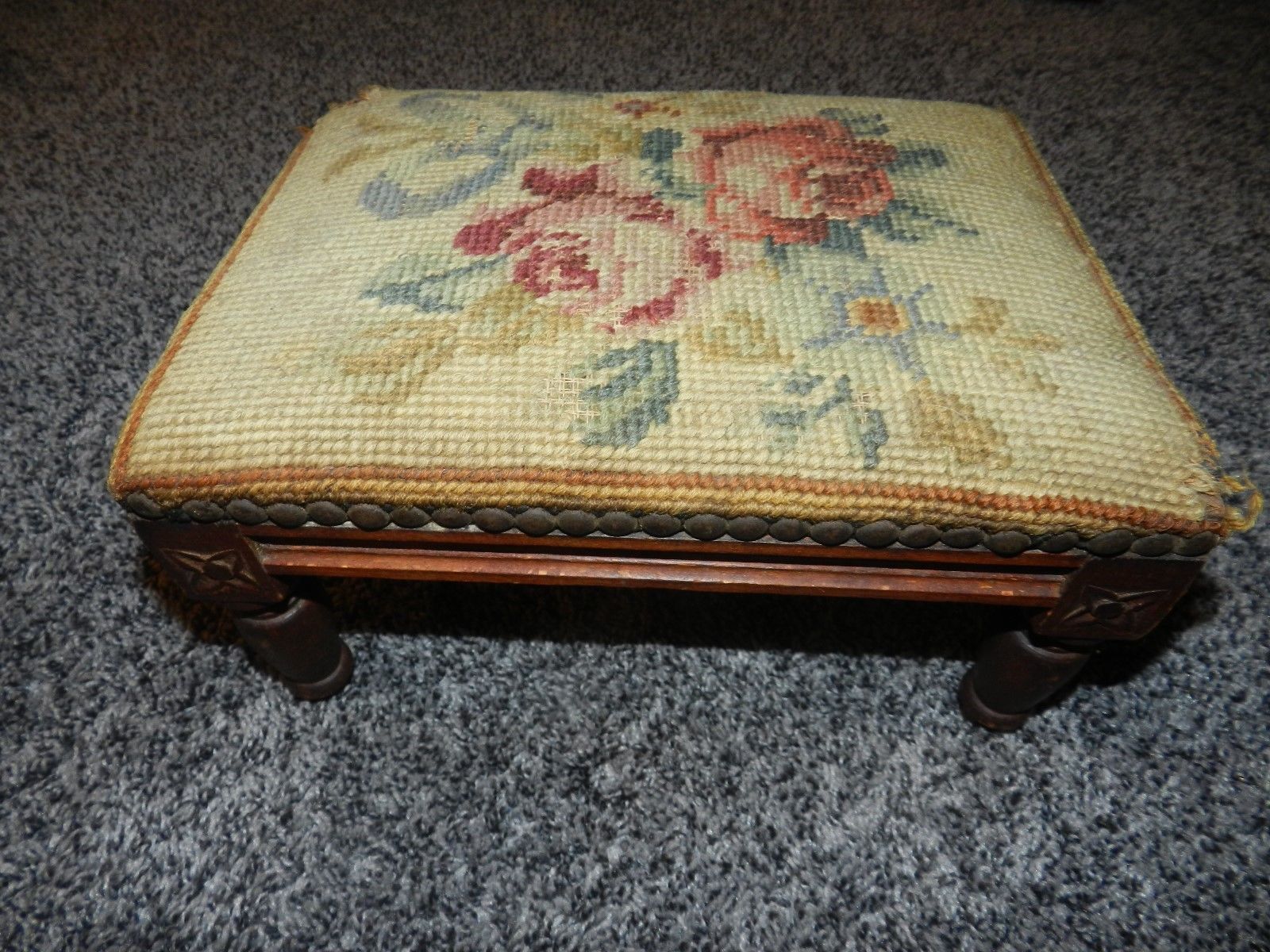 Title (ebay affiliate link): ANTIQUE DIMINUTIVE FOOT STOOL with EMBROIDERED TOP 12" W x 9" DEEP x 6.5" HIGH