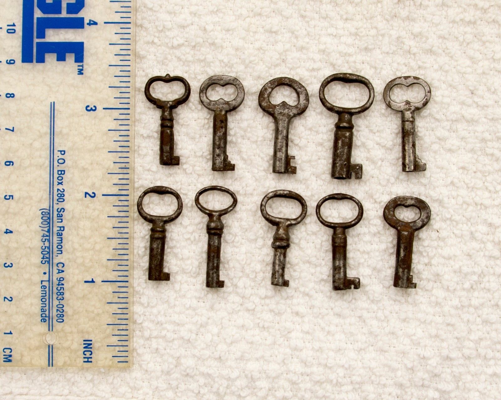 Vintage antique lot of 10 single bit hollow barrel skeleton keys lock furniture