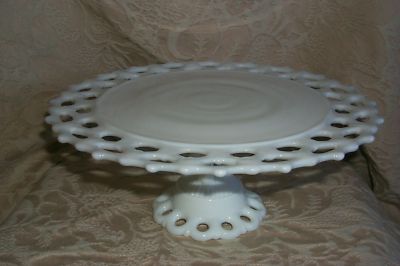 11"Round Open-Lace Milk Glass Cake Pedestal