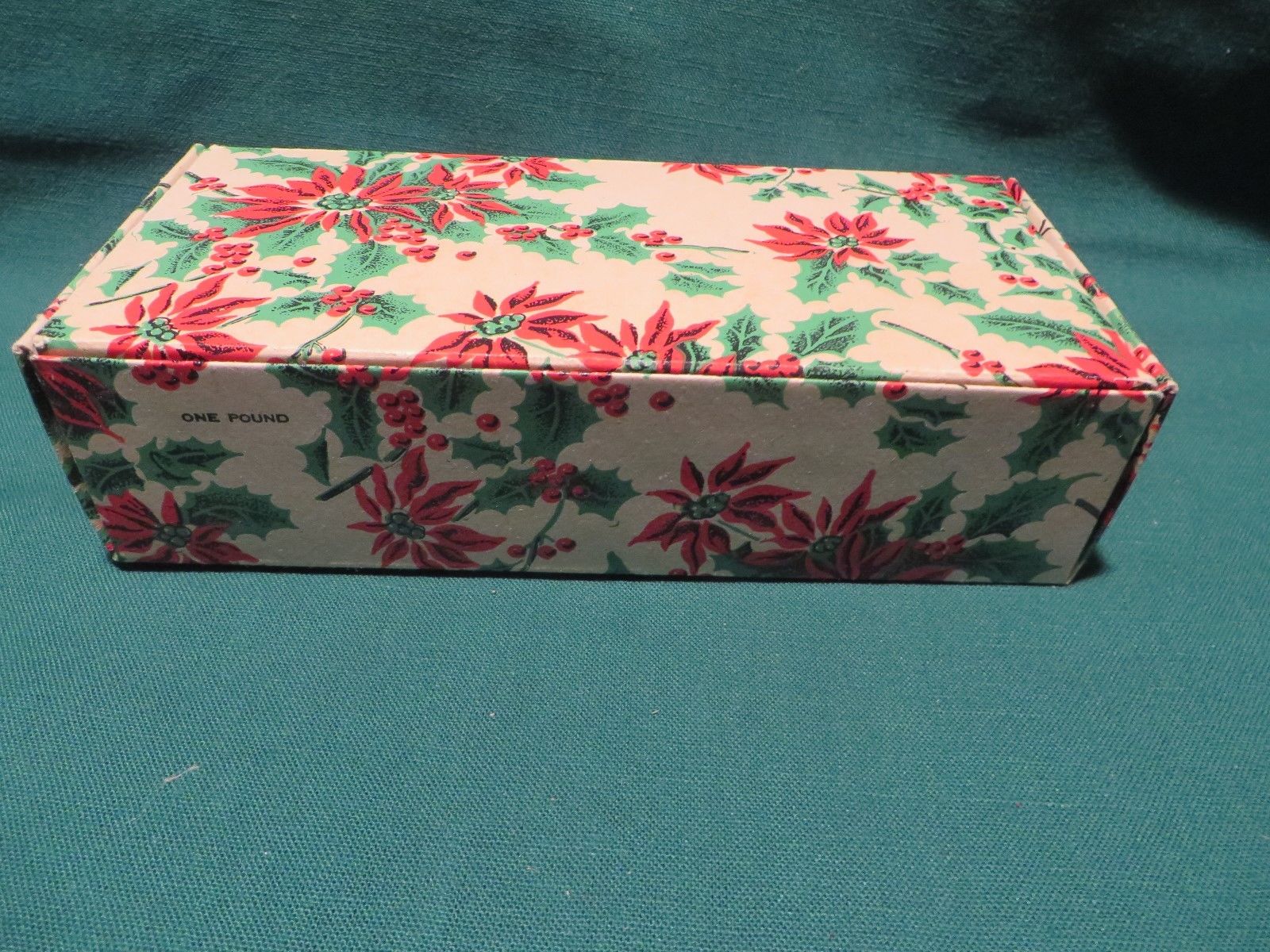 Title (ebay affiliate link): Vintage 1 Pound Cardboard Christmas Candy Box - Poinsettias