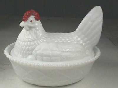 ANTIQUE VINTAGE MILK GLASS HEN ON NEST - EXC. COND.