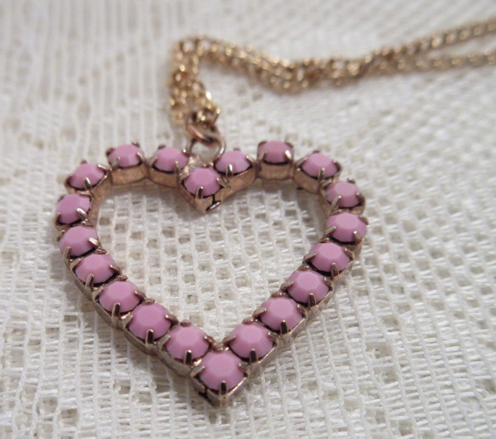 Vintage Heart Pendant Necklace Pink Milk Glass