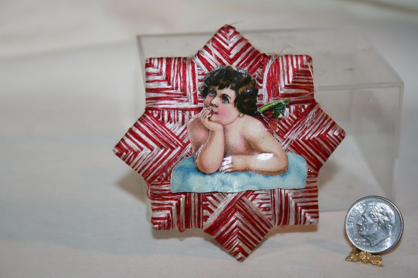 Antique German String Art Star w Angel Die Cut Xmas Ornament Dollhouse 1:12 NR