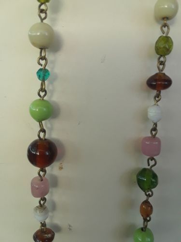 50" glass bead chain linked necklace amber teal pink milk glass white awesome!