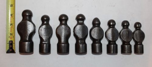 Old Ball Peen Small Hammer Heads, lot of 8, 8 oz lightest and 1 lb 6 oz heaviest