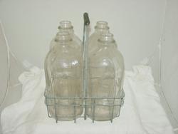 Wire Milk Carrier Plus 4 GLASS Half Gallon Bottles