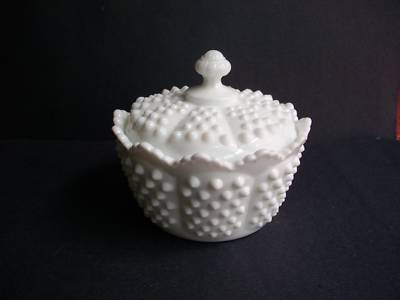 FENTON HOBNAIL MILK GLASS COVERED CANDY DISH