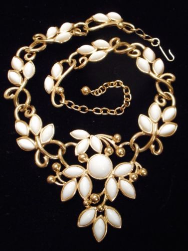 Title (ebay affiliate link): LARGE & SHOWY 1990''s Vintage MILK GLASS RHINESTONE Necklace by TRIFARI