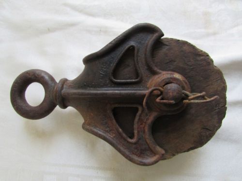 Title (ebay affiliate link): ANTIQUE E.C. STEARNS & CO. HAY TROLLEY PULLEY CAST IRON & WOOD PAT. DATE 1885?