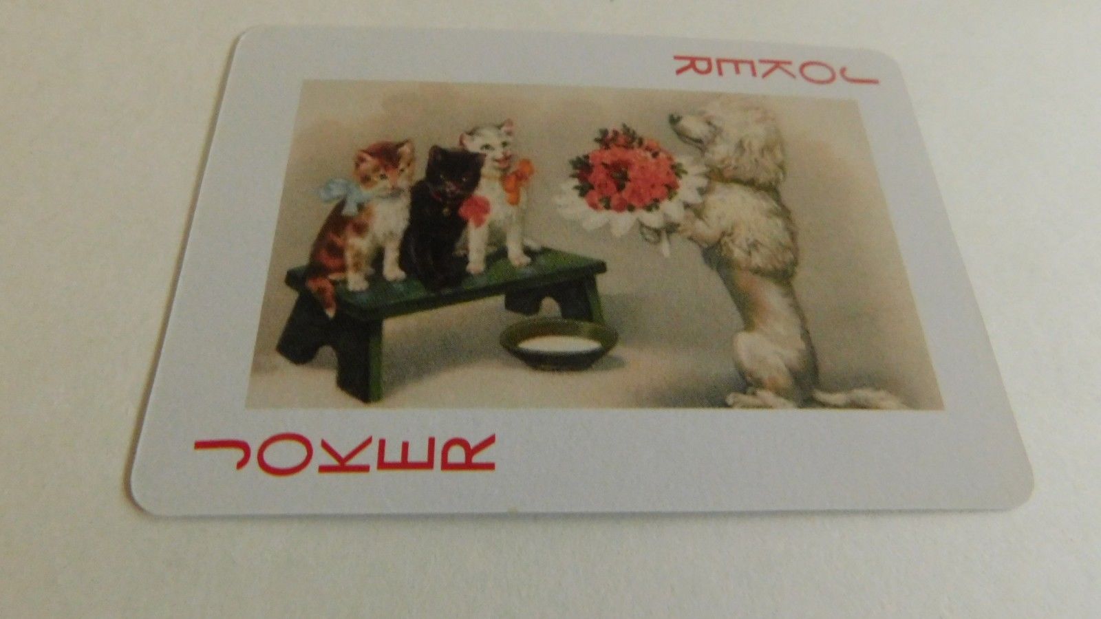 Title (ebay affiliate link): JOKER PLAYING CARD POODLE DOG WITH 3CATS