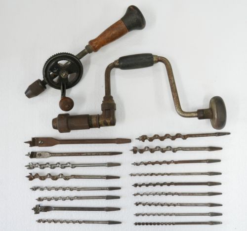 Title (ebay affiliate link): ANTIQUE WOOD DRILL BRACE and AUGERS BITS wood working tools