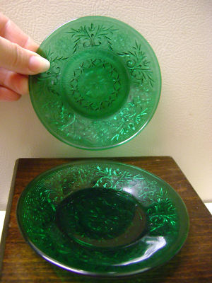 Title (ebay affiliate link): 2 OLD SMALL EMERALD GREEN GLASS DISHES EXCELLENT SHAPE